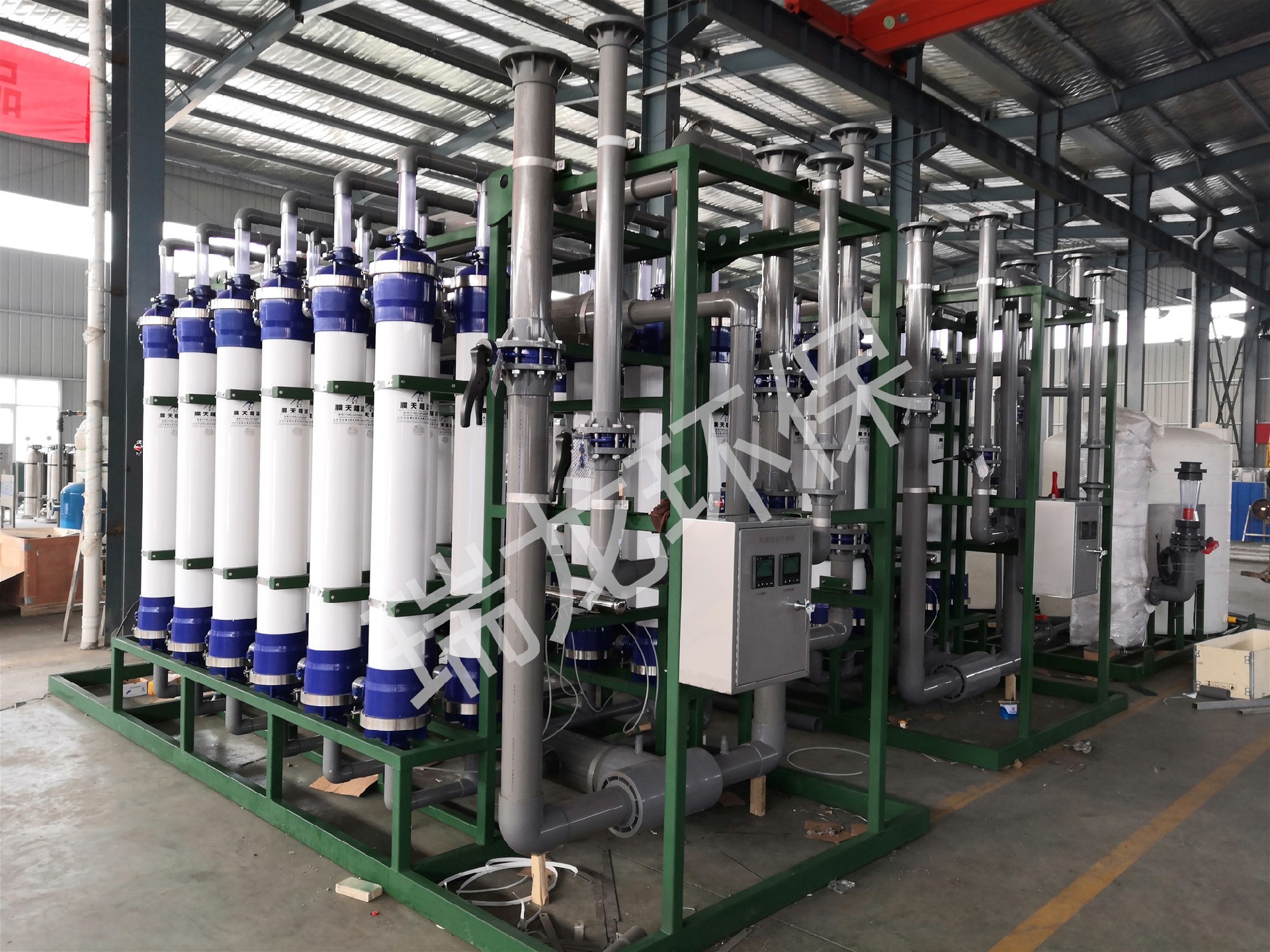 超濾是一種以篩分為分離原理,以壓力為推動力的膜分離過程,過濾精度在0.005-0.01μm范圍內, 可有效去除水中的微粒、膠體、細菌、熱源及高分子有機物質??蓮V泛應用于物質的分離、濃縮、提純。超濾過程無相轉化,常溫下操作,對熱敏性物質的分離尤為適宜,并具有良好的耐溫、耐酸堿和耐氧化性能,能在60℃ 以下,pH為2-11的條件下長期連續使用。