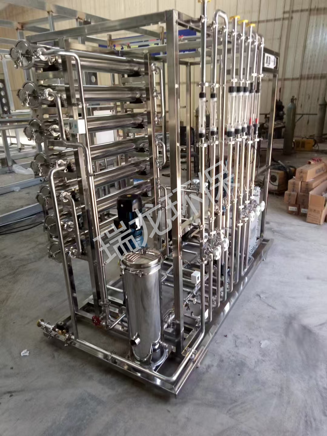此套設(shè)備為醫(yī)藥純化水設(shè)備,工藝為預(yù)處理+二級(jí)反滲透+EDI電除鹽,過(guò)流部件全不銹鋼304材質(zhì),滿足藥典要求。
