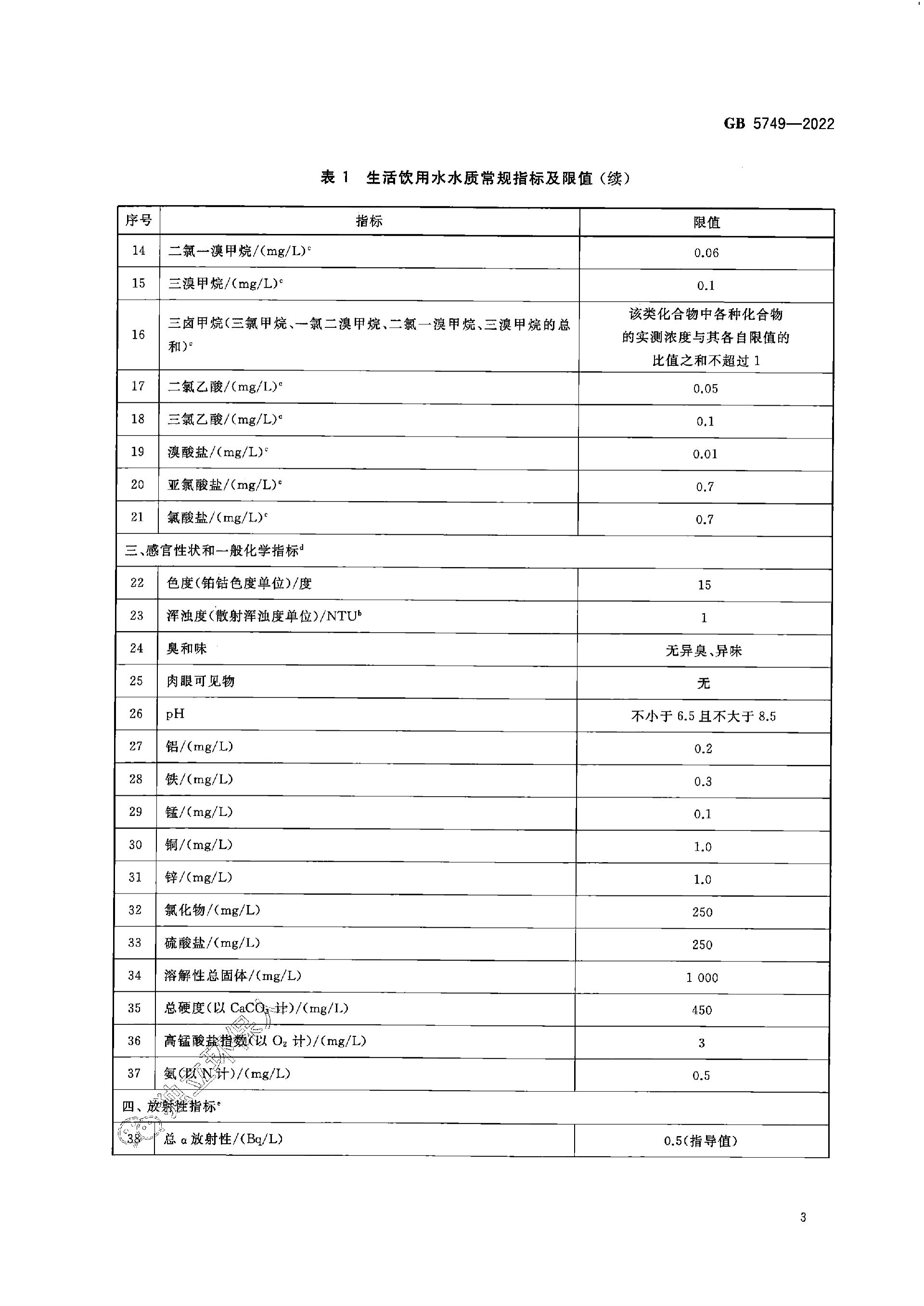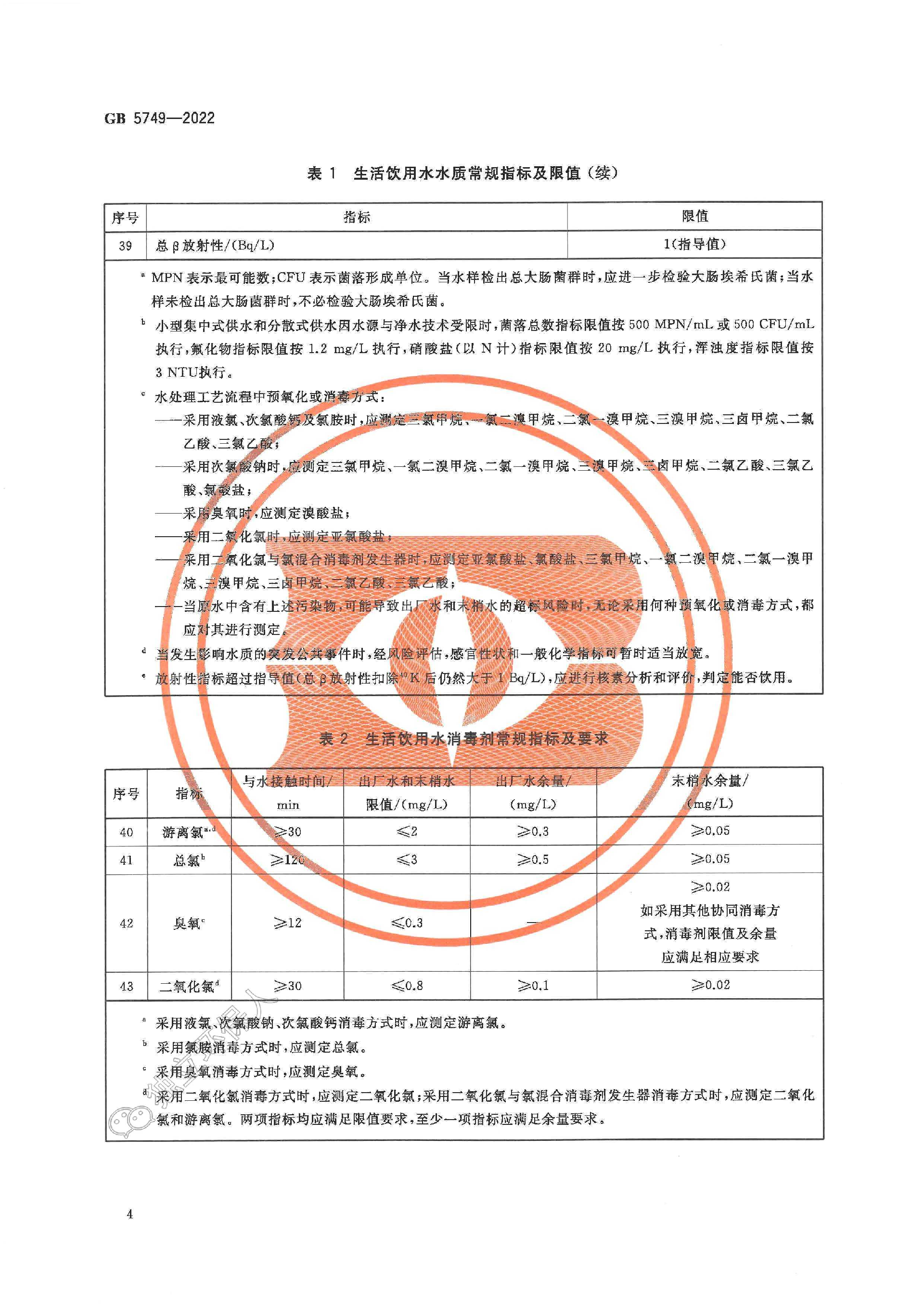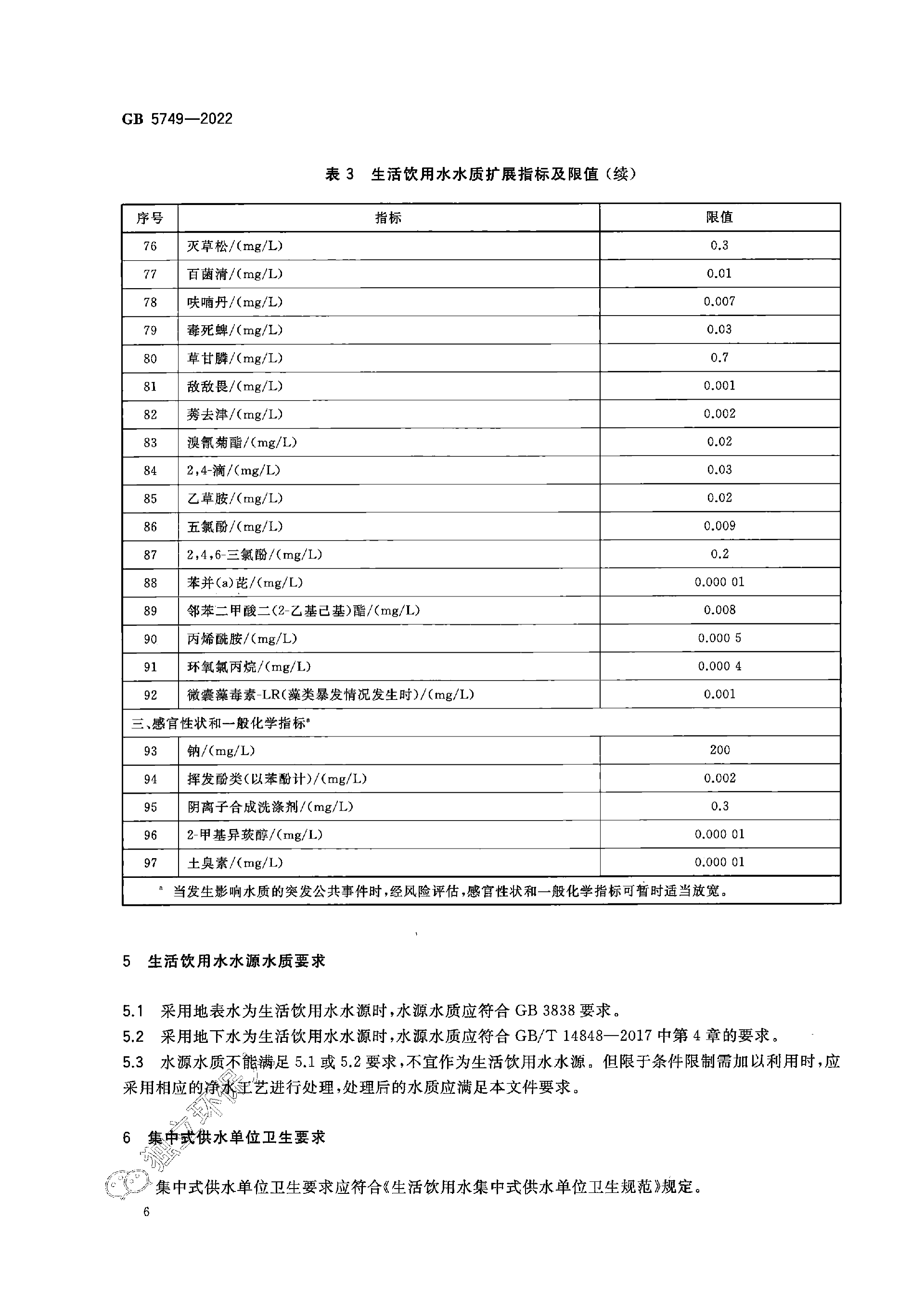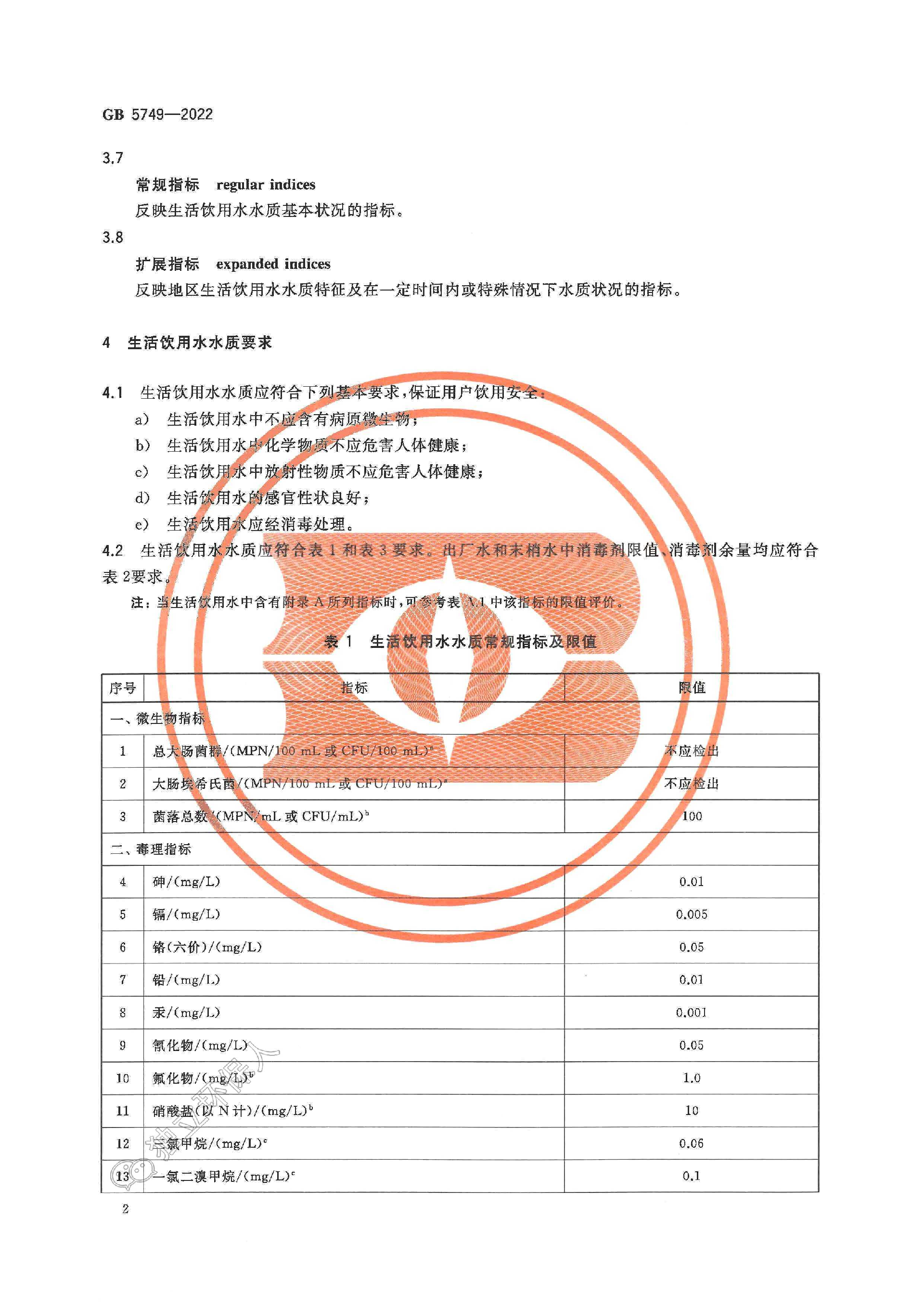 生活飲用水標準GB 5749-2022 代替GB 5749-2006